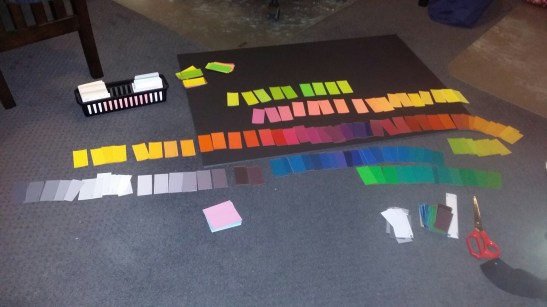 Sorting out the swatches. I wanted to be able to remove and reinsert swatches for idea generation so I used (a lot of) blue tack for this project.