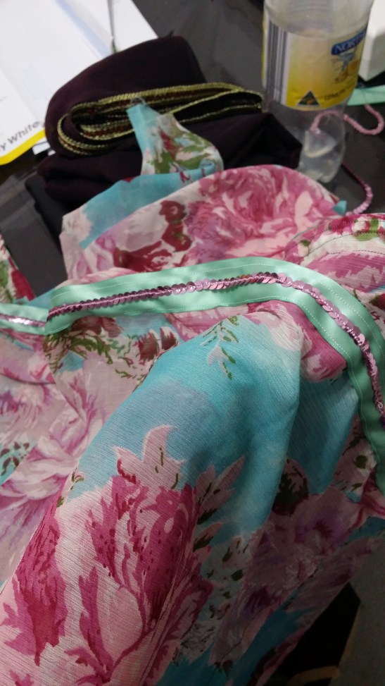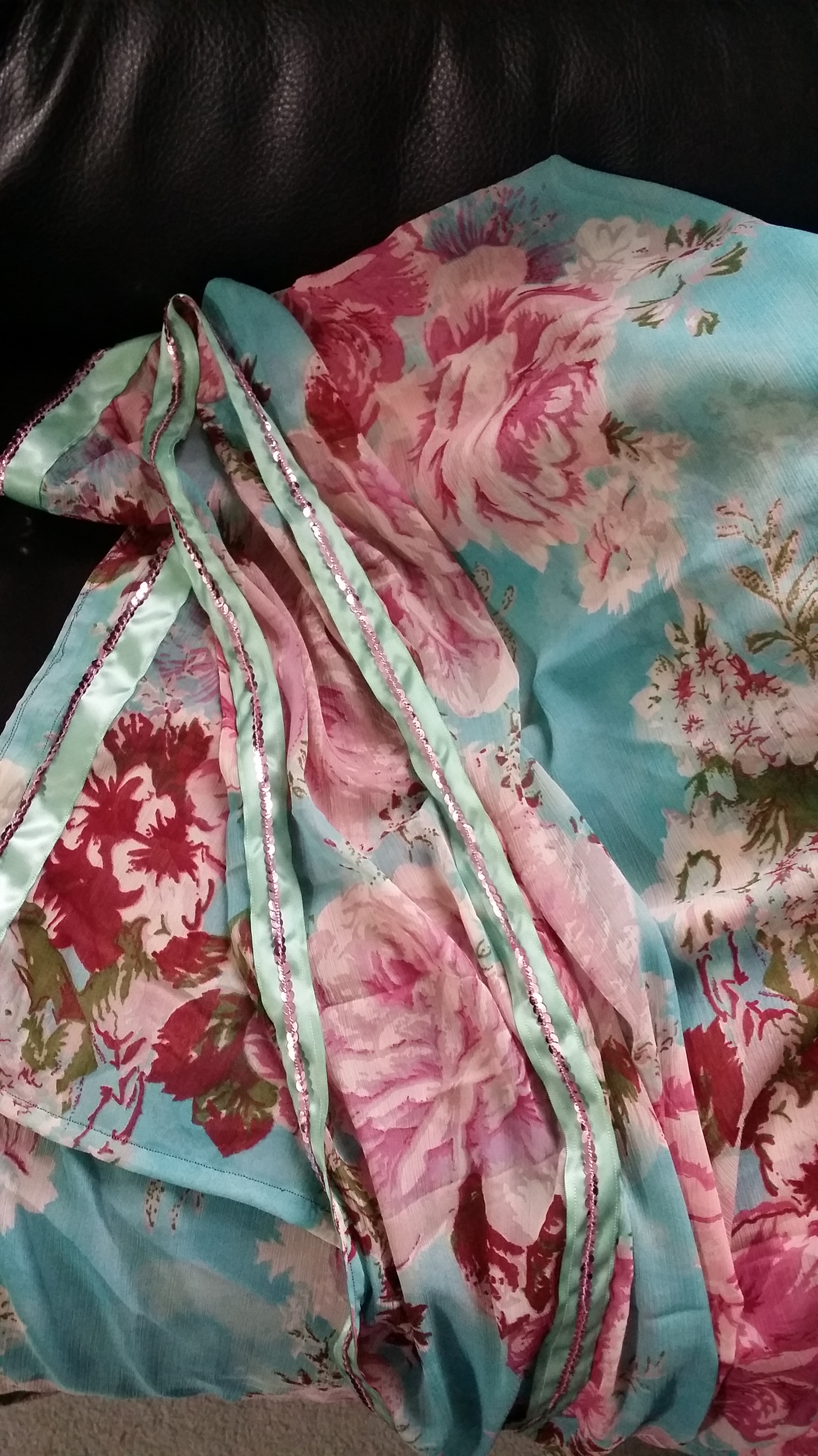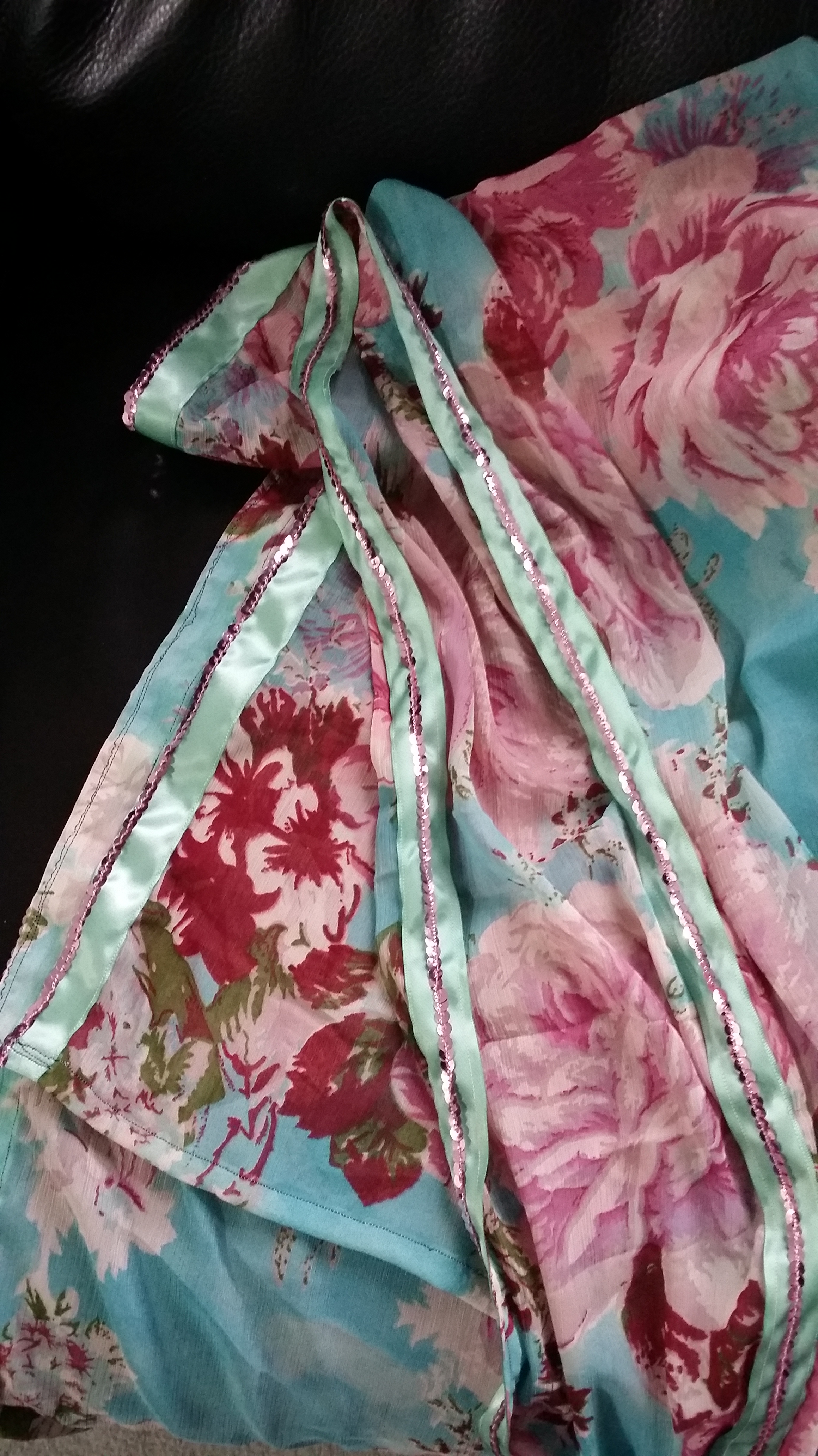 This project I did about 2 years ago (in 2014) by purchasing some flowery printed fabric from spotlight and adding some ribbon and sequinned trim to it. Since then I have only worn it a couple of times but I have fond memories of it as it was the starting point for my creativity in terms of my indian outfits 🙂